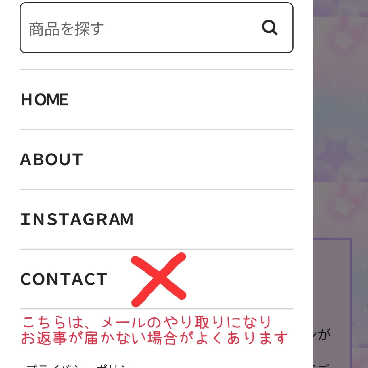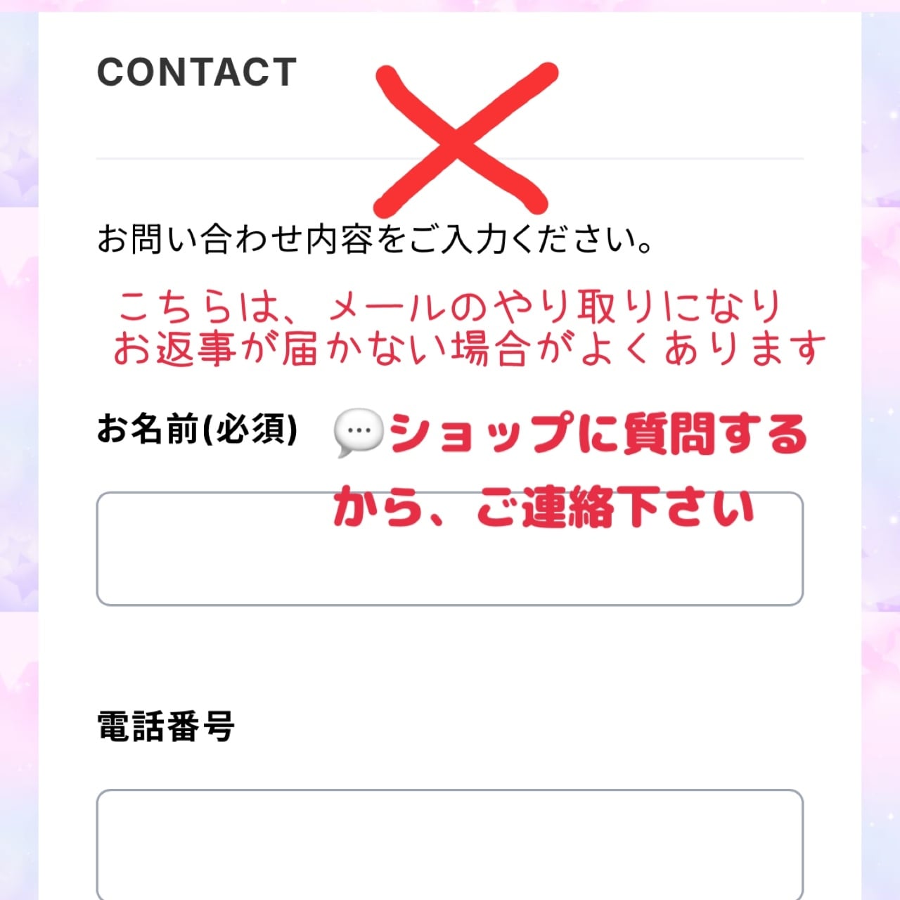 メッセージはメールではなく、【ショップに質問する】からの連絡をお願いします。