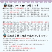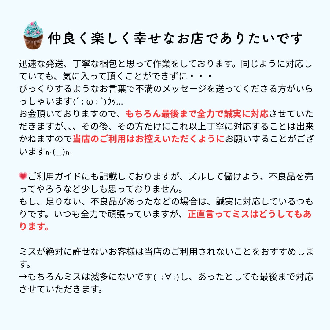 申し訳ございませんが、焦ってしまうので、いつまでに必要です。出来るだけ急いで発送してくださいなどのメッセージはお控えくださいると助かります。これ以上ないくらいにいつもめいっぱい急いでいますm(__)m