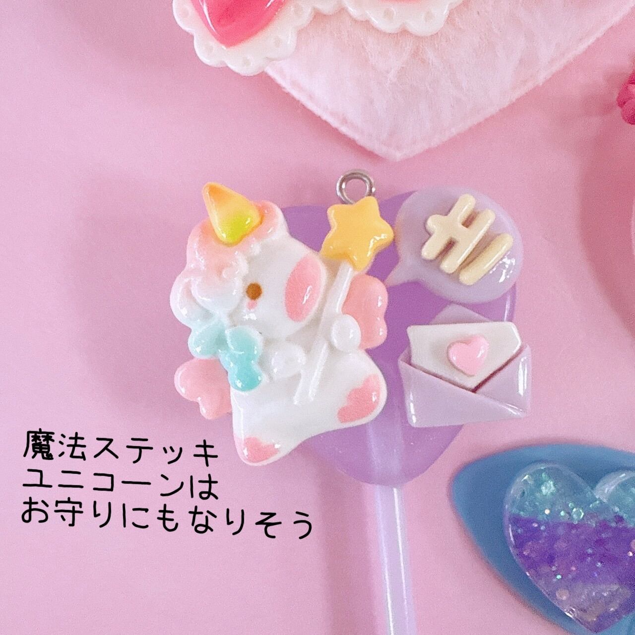 D12)4個ランダム ミニサイズ ハートのお手紙 ラブレター ピンク パープル 黄色 ミント パーツ デコパーツ レジン カボション
