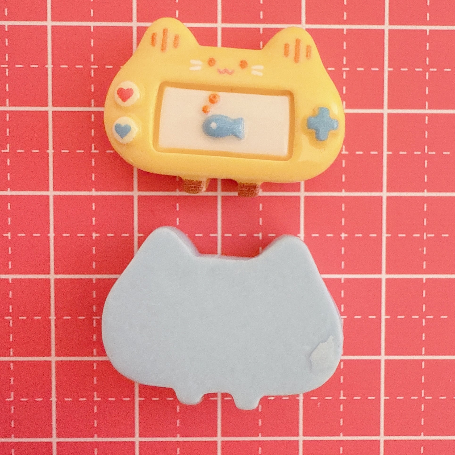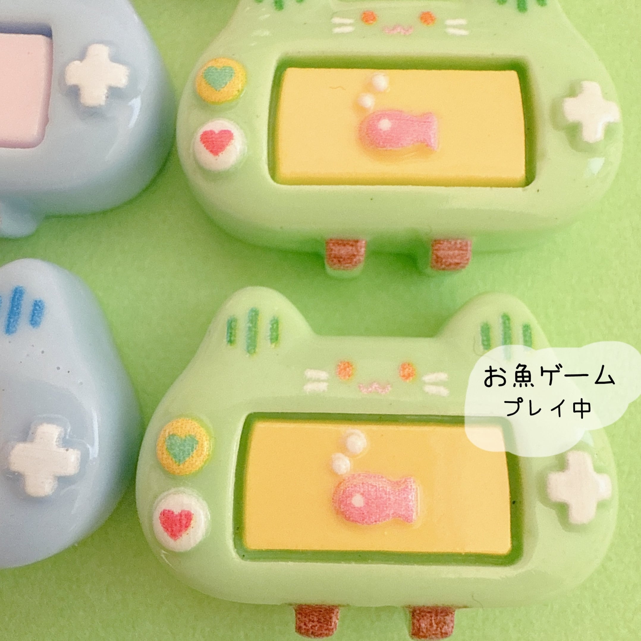 C40)2個 ねこちゃんゲーム ネコ耳 ねこゲーム機 ピンク 黄色 ブルー ミント BOYS かわいい デコパーツ デコ レジン カボション