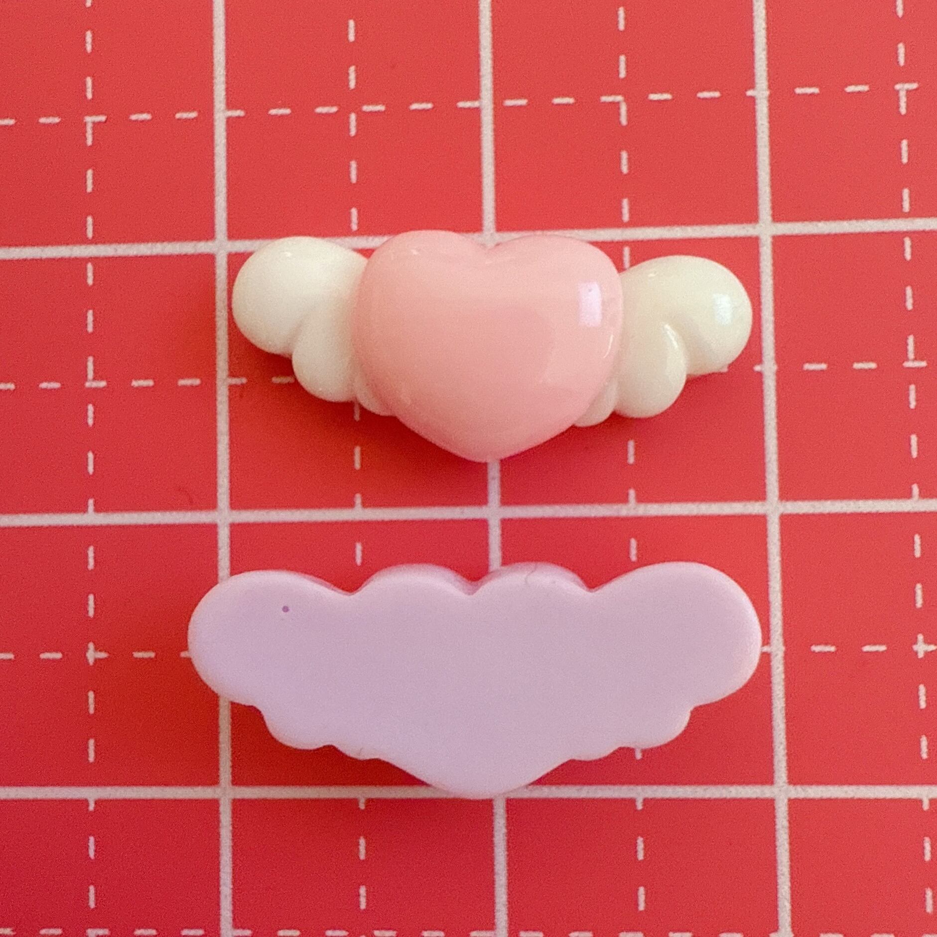 D27)4個ランダム ミニサイズ エンジェルハート 羽付きハート ガーリー ピンク 黄色 ブルー チョコ パーツ デコパーツ レジン カボション