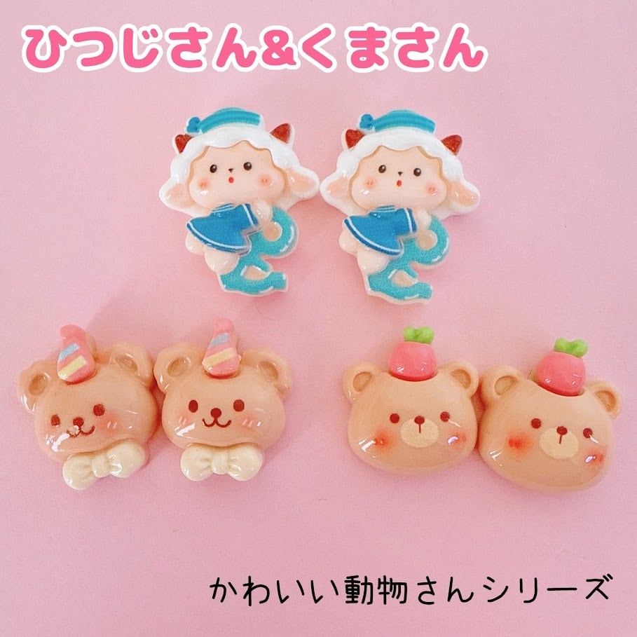 C43)2個 ひつじ&くまさん どうぶつさんシリーズ BOYS かわいい デコパーツ デコ レジン カボション